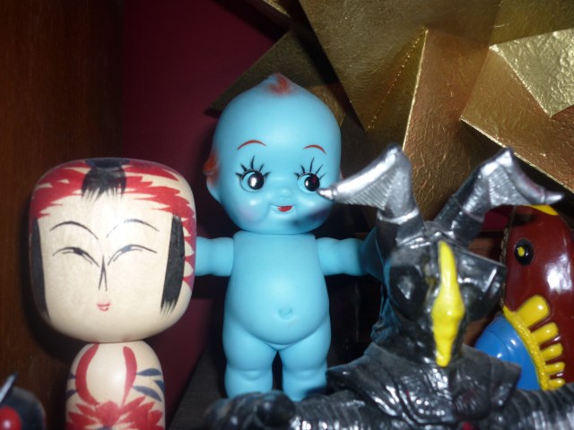 While walking on Brunswick Street, Melbourne, Australia, I spotted a Kewpie from the outside. I barged in and started snapping photos. This is a BLUE KEWPIE!!!