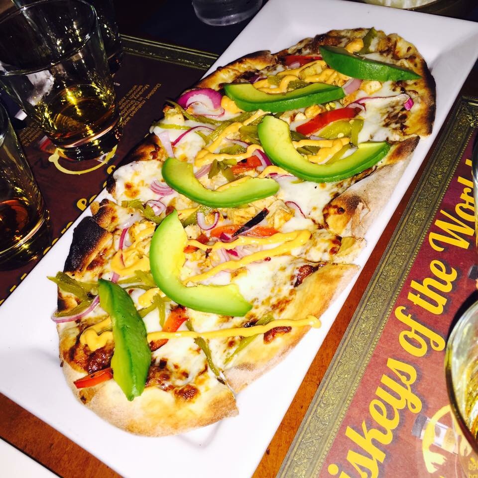 Avocado pizza, crusty but chewy crust made for a perfect combination.
